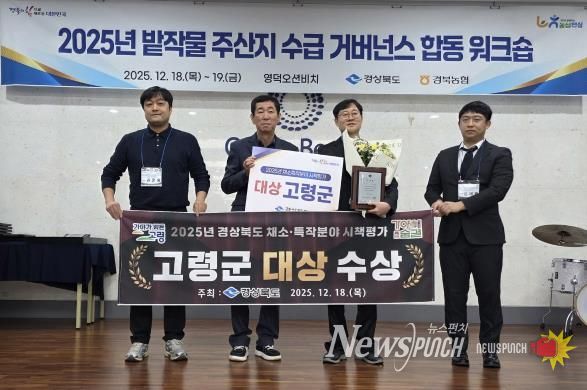 뉴스펀치 김길룡 기자 | 고령군은 지난 12월 18일 경상북도에서 실시한 『2025년 경상북도 채소․특작분야 시책평가』에서 대상을 수상했다.