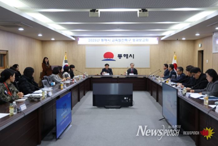 뉴스펀치 김길룡 기자 | 동해시는 12월 19일 동해시청 본관 2층에서 '2025 교육발전특구 성과보고회'를 개최하고, 한 해 동안 추진해 온 교육발전특구 사업의 성과를 점검하는 한편 2026년 운영 방향을 공유했다.