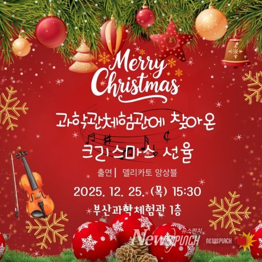 뉴스펀치 김길룡 기자 | 부산광역시교육청창의융합교육원(원장 한종환)은 오는 25일 동구 초량동 부산과학체험관에서 시민들을 대상으로 ‘현악 앙상블 크리스마스 특별 음악회’를 개최한다.