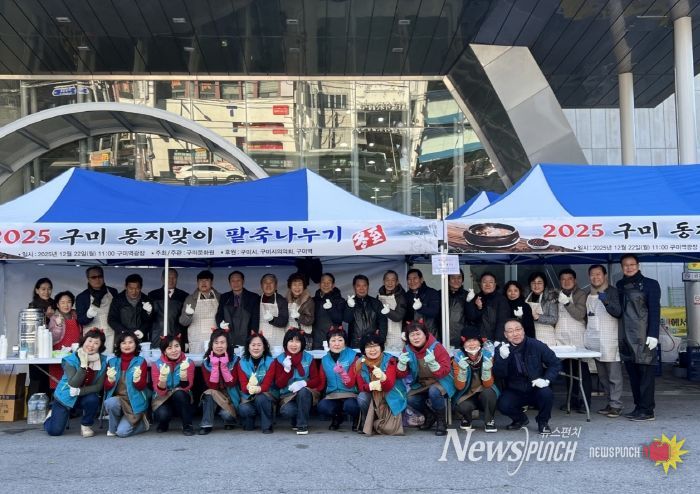 뉴스펀치 김길룡 기자 | 구미시는 지난 22일 구미역 광장에서 구미문화원 주관으로 '2025 동지맞이 팥죽나누기 행사'를 열었다.