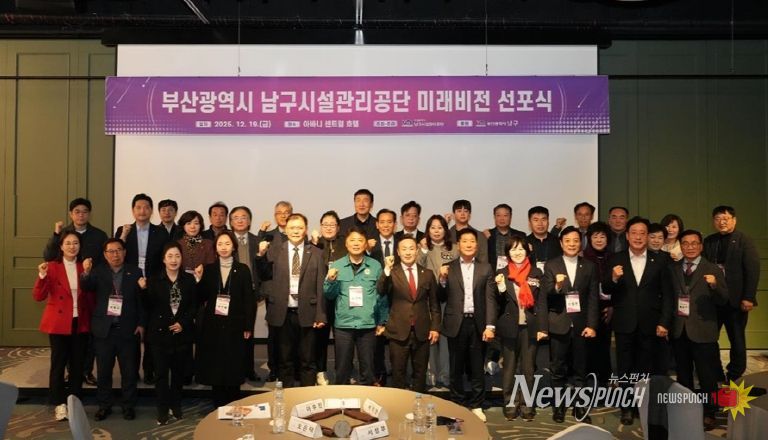 뉴스펀치 김길룡 기자 | 부산 남구시설관리공단은 지난 12월 19일, 부산 남구 아바니 센트럴 호텔에서 ‘미래 비전 선포식’을 개최했다고 밝혔다. 이번 행사는 공단 출범 3년을 맞아 처음으로 열린 비전 선포 행사로, 행정안전부 지방공기업 경영평가 개선 과제로 제시된 중장기 경영전략 수립과 이행을 본격화하는 출발점으로 마련됐다.