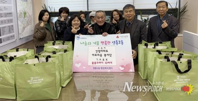 뉴스펀치 김길룡 기자 | 지난 22일, 수원특례시 영통구 영통3동 건영2차아파트 아모리움 자원봉사단에서 관내 독거 어르신과 한부모가정을 대상으로 물품꾸러미와 성금을 지원하는 나눔 활동을 진행했다. 이번 나눔은 앞서 열린 협약식 이후 추진된 나눔 활동으로, 지역사회 내 취약계층을 위한 실질적인 지원이 이루어졌다.