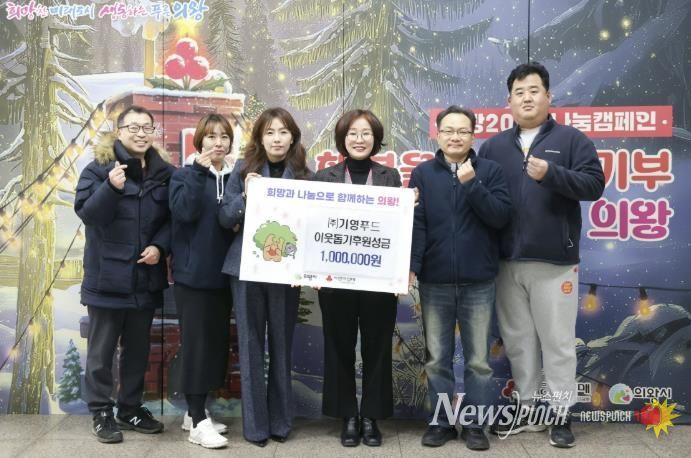 뉴스펀치 김길룡 기자 | 의왕시가 12월 22일 (주)기영푸드로부터 어려운 이웃을 돕기 위한 성금 100만원을 기부받았다고 밝혔다.