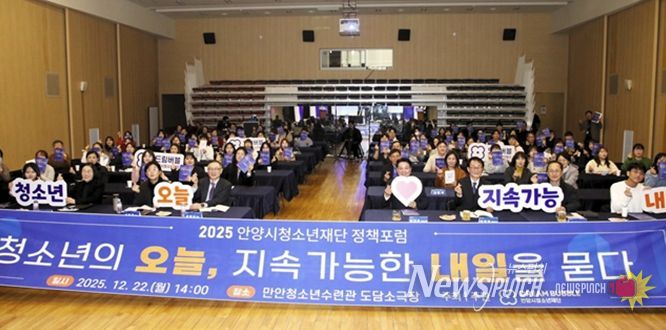 뉴스펀치 김길룡 기자 | 안양시청소년재단은 지난 22일 만안청소년수련관 도담소극장에서 120명이 참석한 가운데 ‘청소년의 오늘, 지속가능한 내일을 묻다’를 주제로 2025년 안양시청소년재단 정책포럼을 개최했다고 23일 밝혔다.