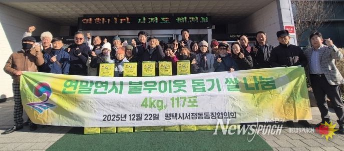 뉴스펀치 김길룡 기자 | 평택시 서정동 통장협의회는 지난 22일 연말연시를 맞아 어려운 이웃과 취약계층에 대한 사랑 나눔을 실천하고자 연말연시 불우이웃 돕기 쌀 나눔 행사를 진행했다.