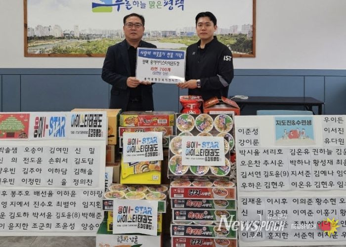 뉴스펀치 김길룡 기자 | 평택시 용이동에 있는 용이아이스타태권도장이 23일 연말을 맞아 관내 어려운 이웃들에게 전달해달라며 라면 700개를 용이동 행정복지센터에 기부했다.