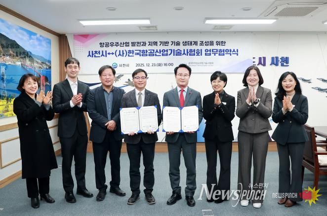 뉴스펀치 김길룡 기자 | 사천시는 지난 23일 시청 열린시장실에서 사단법인 한국항공산업기술사협회와 항공우주산업 발전과 지역 기반 기술 생태계 조성을 위한 업무협약(MOU)을 체결했다.