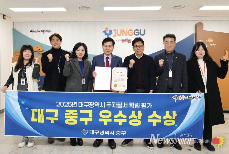 뉴스펀치 조평훈 기자 | 대구 중구는 대구시가 9개 구·군을 대상으로 진행한 ‘2025년 주차질서 확립 평가’에서 우수기관으로 선정됐다.
