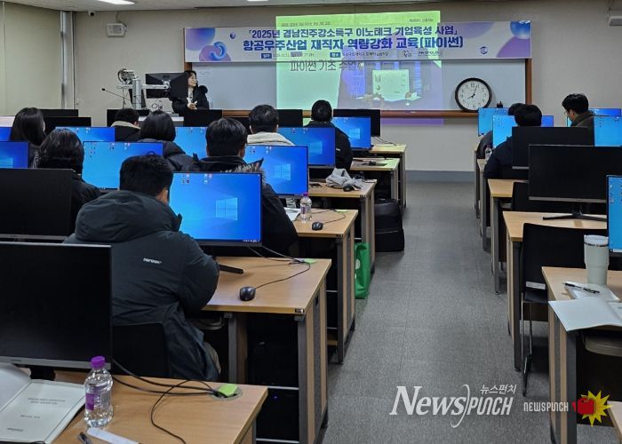 뉴스펀치 김길룡 기자 | 경상국립대학교 경남진주강소특구지원센터는 12월 22~23일 산학협력 중심의 칠암캠퍼스에서 우주항공산업 분야 재직자를 대상으로 ‘파이썬을 활용한 재직자 역량강화 교육’을 실시했다.