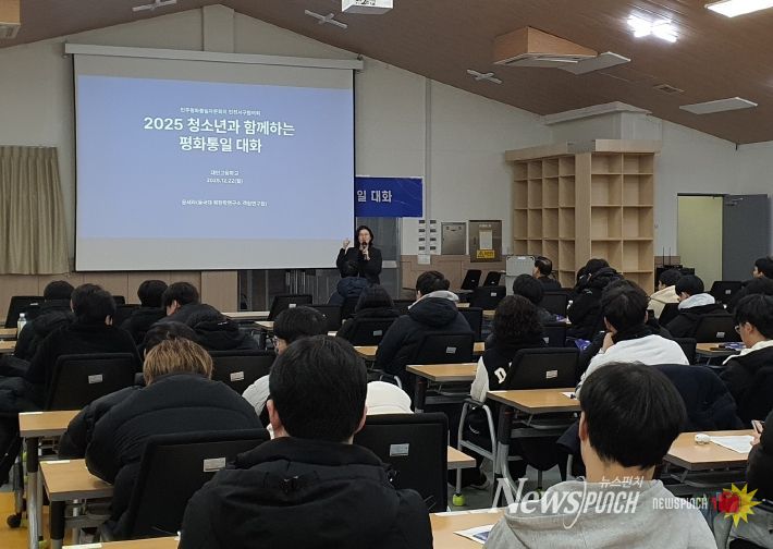 뉴스펀치 김길룡 기자 | 민주평화통일자문회의 인천서구협의회(회장 유정학)는 지난 22일 대인고등학교 강당에서 대인고 3학년 학생 및 교사 등 130여 명이 참석한 가운데 ‘2025년 청소년과 함께하는 평화통일 대화’를 개최했다.