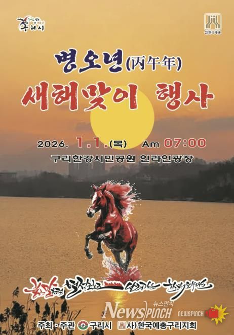 뉴스펀치 김길룡 기자 | 구리시는 오는 2026년 1월 1일 오전 7시, 구리한강시민공원 인라인 광장에서 ‘2026 병오년(丙午年) 새해맞이 행사’를 개최한다. 이번 행사는 시민들과 함께 새해 첫 해돋이를 맞으며 희망과 화합의 마음을 나누기 위해 마련됐다.