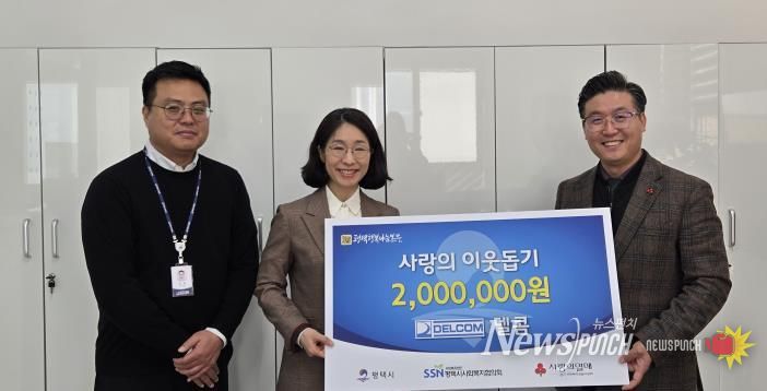 뉴스펀치 김길룡 기자 | 델콤이 지난 19일 평택행복나눔본부를 방문해 평택시 아동복지시설을 위해 200만 원의 성금을 전달했다.