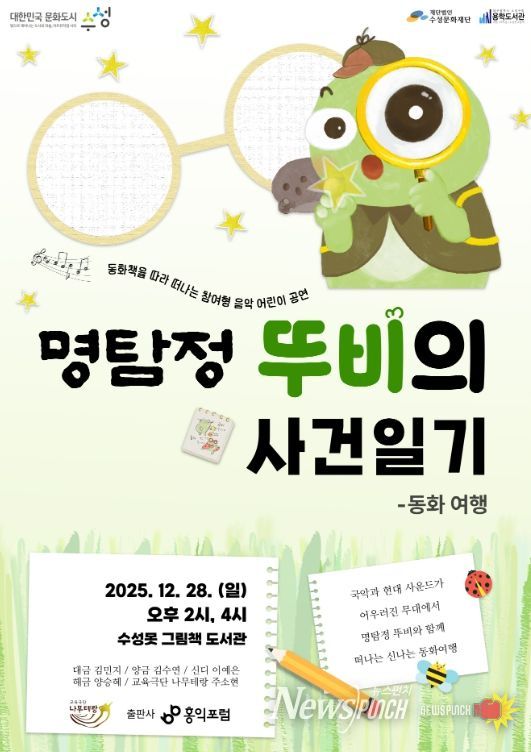 한편, 이번 공연의 원작인 ‘명탐정 뚜비의 사건일기’는 수성구립도서관을 통해 열람 및 대출이 가능하며, 본 공연은 대한민국 문화도시 수성 사업의 일환으로 추진된다.