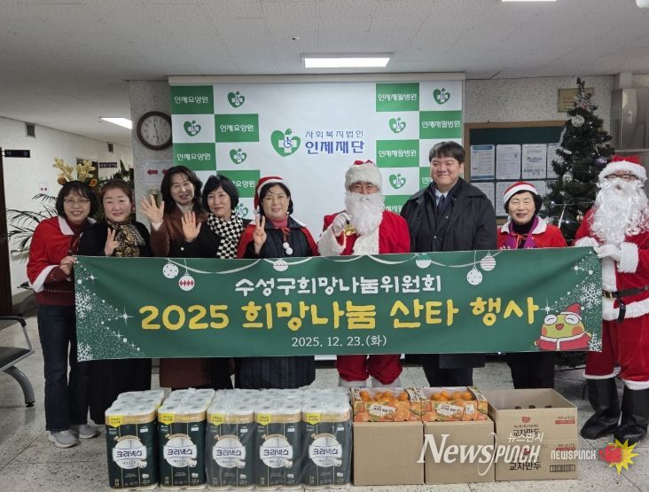 뉴스펀치 조평훈 기자 | 대구 수성구희망나눔위원회(회장 배영호)는 크리스마스를 앞둔 지난 23일 관내 이웃들에게 사랑과 희망을 전하는 ‘2025 희망 나눔 산타 행사’를 개최해 지역사회의 훈훈한 연말 분위기 조성에 앞장섰다.