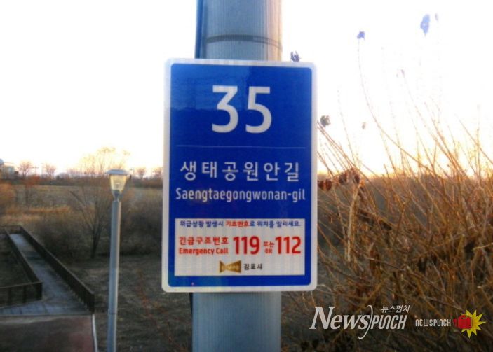뉴스펀치 김길룡 기자 | 김포시는 김포한강야생조류생태공원 내 주소 안내시설을 확충해 위급상황 발생 시 기초번호판을 활용한 정확한 위치 신고가 가능하도록 했다고 밝혔다.