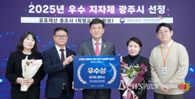 뉴스펀치 김길룡 기자 | 광주시는 지난 22일 정부서울청사에서 열린 ‘2025년 공유재산 관리 우수 지방정부 시상식’에서 공유재산 총조사 우수 지방자치단체로 선정돼 특별교부세 3천만 원을 확보했다고 24일 밝혔다.
