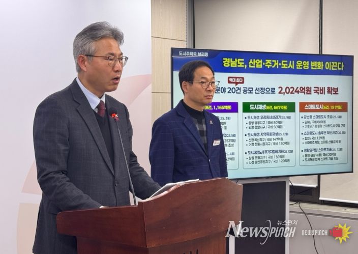뉴스펀치 김길룡 기자 | 경상남도는 올해 도시주택분야 전반에 걸쳐 정부 공모사업에 전략적으로 대응한 결과, 역대 가장 많은 총 20건의 공모에 선정되며 국비 2,024억 원을 포함 총사업비 3,163억 원을 확보했다고 24일 밝혔다.