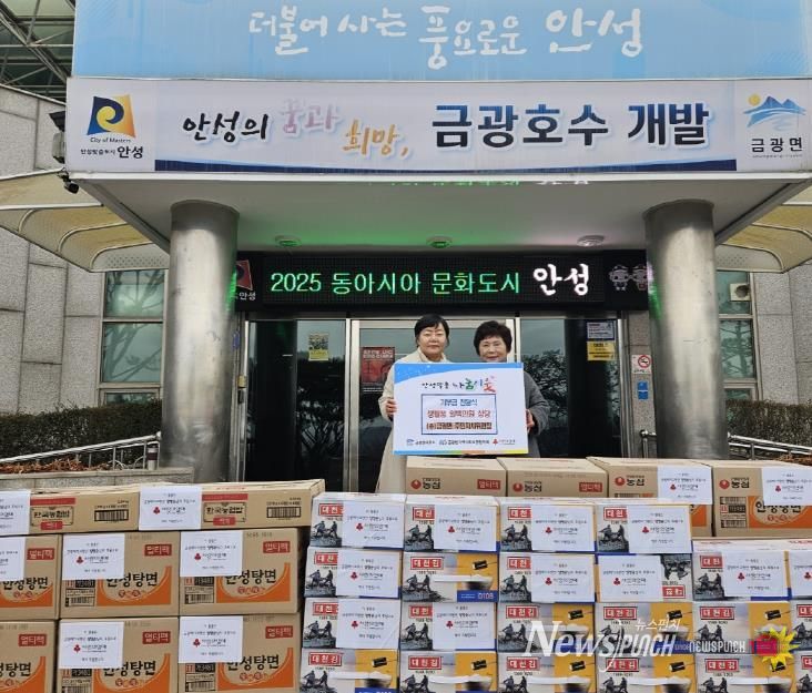 뉴스펀치 김길룡 기자 | 안성시는 12월 23일, 금광면 주민자치위원회 양영순 위원장이 겨울철 취약계층 가구의 따뜻한 겨울나기를 돕기 위해 라면, 김 등 생필품 100만원 상당을 금광면 행정복지센터에 기탁했다고 밝혔다.