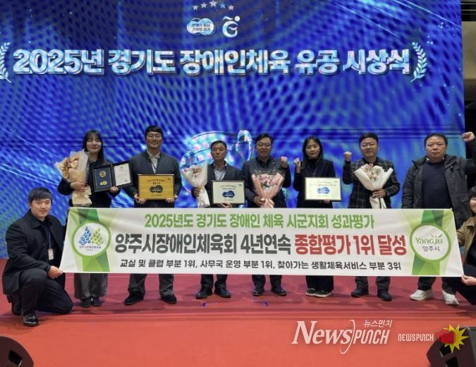 뉴스펀치 김길룡 기자 | 양주시 장애인체육회가 경기도 장애인체육 성과평가에서 4년 연속 최상위 성적을 거두며 경쟁력을 입증했다.