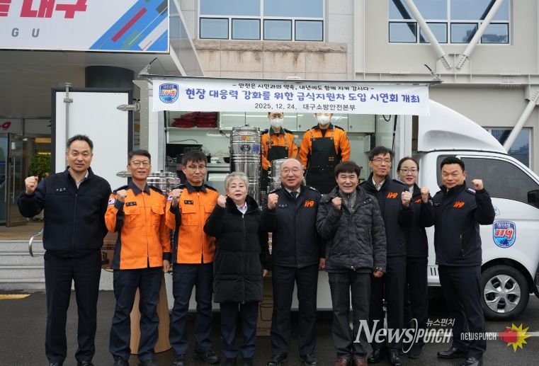뉴스펀치 조평훈 기자 | 대구소방안전본부는 장시간 재난 현장에서 활동하는 소방대원의 회복과 안전을 체계적으로 지원하기 위해 119급식지원차를 도입하고, 내년 1월부터 본격적인 운영에 들어간다.