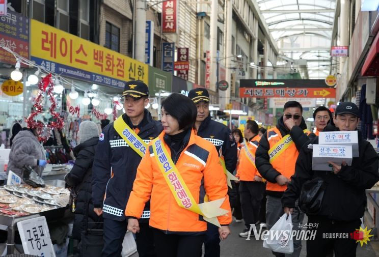 뉴스펀치 조평훈 기자 | 대구소방안전본부와 119시민안전봉사단연합회는 12월 23일 오전 11시, 겨울철 화재 위험이 높아지는 시기를 맞아 전통시장을 대상으로 화재예방 캠페인을 실시했다.