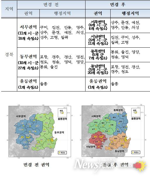 뉴스펀치 김길룡 기자 | 경북도 보건환경연구원은 2026년 1월 1일부터 경북의 대기질 모니터링 강화를 위해 미세먼지 경보제 발령권역을 기존 3개 권역에서 5개 권역으로 더 세분화하여 운영한다.