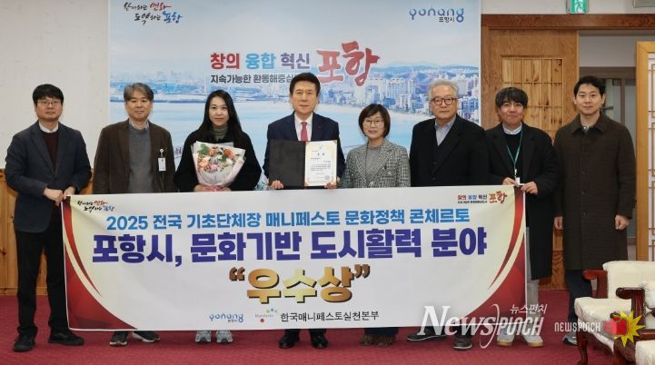 뉴스펀치 김길룡 기자 | 포항시가 지난 22일부터 23일까지 양일간 상지대학교에서 열린 ‘제1회 2025 전국 기초단체장 매니페스토 문화정책 콘체르토’에서 문화기반 도시활력 분야 우수상을 수상했다.