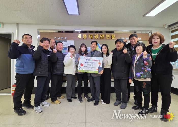 홍광래 세종대왕면장은 “어려운 이웃을 위해 희망과 사랑으로 나눔운동에 앞장서 주시는 마음 감사드린다.”며 “기탁해 주신 성금은 복지 지원이 필요한 위기가구를 위해 소중하게 사용하겠다.”고 전했다.