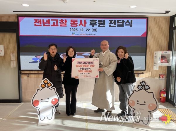 조혜연 관장은 “연말마다 변함없이 취약계층 이웃을 위해 따뜻한 나눔을 실천해 주시는 천년고찰 동사 주지 상우스님과 신도분들께 깊이 감사드립니다.”라며, “전달해 주신 팥죽은 어르신들께서 맛있게 드시고, 건강하게 새해를 맞이하실 수 있도록 소중히 전달하겠습니다.”라고 말했다.