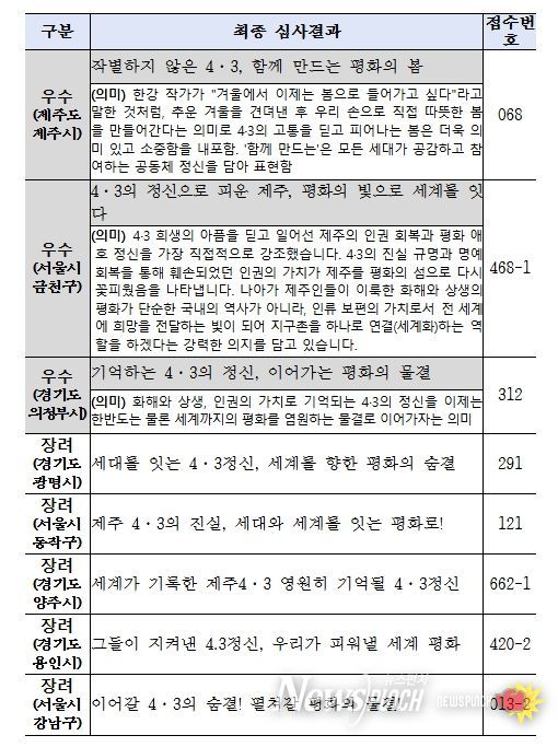 제주도는 지난 10월 2일부터 11월 1일까지 한 달간 4·3의 역사적 가치 재조명과 전국적 공감대 형성을 목표로 전국 공모를 실시했다.