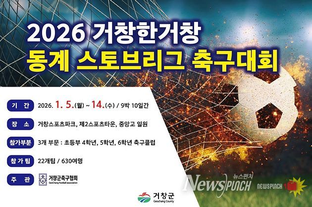 뉴스펀치 김길룡 기자 | 거창군은 오는 새해 5일부터 14일까지 10일간'2026 거창한거창 축구 동계 스토브리그'를 거창스포츠파크, 제2스포츠타운, 중앙고등학교 일원에서 개최한다. 거창에서 새해 스포츠 행사로 열리는 이번 스토브리그는 한겨울 거창을 뜨거운 축구 열기로 채울 전망이다.