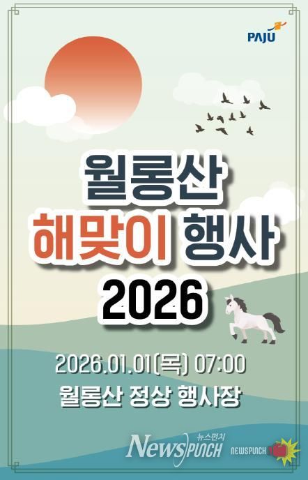 뉴스펀치 김길룡 기자 | 파주시 월롱면 주민자치회는 내년 1월 1일 7시 월롱산에서 주민과 함께하는 녪년 월롱산 해맞이 행사’를 개최한다고 밝혔다.