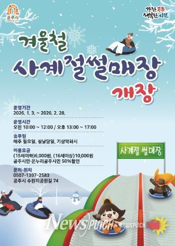 뉴스펀치 김길룡 기자 | 공주시는 2026년 겨울철 사계절썰매장을 오는 1월 3일부터 2월 28일까지 운영한다고 밝혔다.