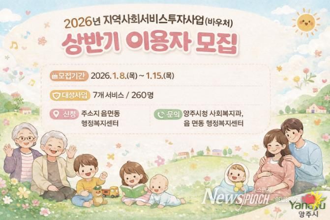 뉴스펀치 박상훈 기자 | 양주시가 2026년 1월 8일부터 1월 15일까지 지역사회서비스투자사업 이용자를 모집한다.