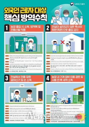이에 따라 도는 외국인 근로자를 통한 바이러스 유입 가능성을 차단하기 위해 입국 후 5일간 농장·축사 출입을 제한하고, 불법 축산물 반입 금지 서약서 징구와 방역 교육을 강화할 방침이다. 농장 출입 시에는 환복과 전용 장화 착용, 신발·의복·소지품 소독 등 기본 방역 수칙을 철저히 이행하도록 지도한다.