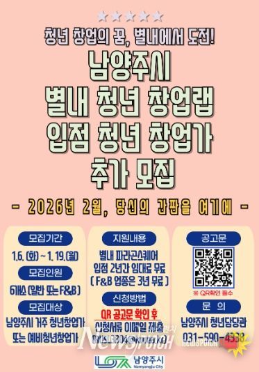 신청 기간은 1월 6일부터 1월 19일 오후 6시까지이며, 신청 희망자는 관련 서류를 남양주시 청년담당관 전자우편으로 제출하면 된다.