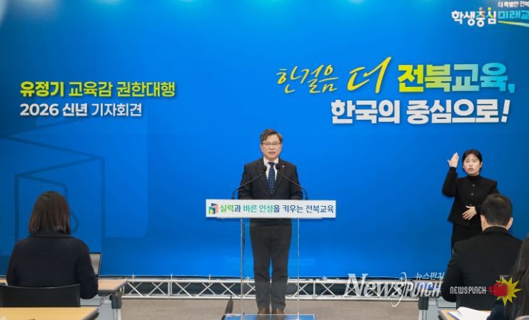 유정기 권한대행은 본청 강당에서 2026년 신년 기자회견을 열고 “올해는 2025년 현장에서 검증된 학력신장과 책임교육의 성과를 정책의 출발선으로 삼아 그 흐름을 더욱 단단히 이어갈 것”이라며 이렇게 말했다.