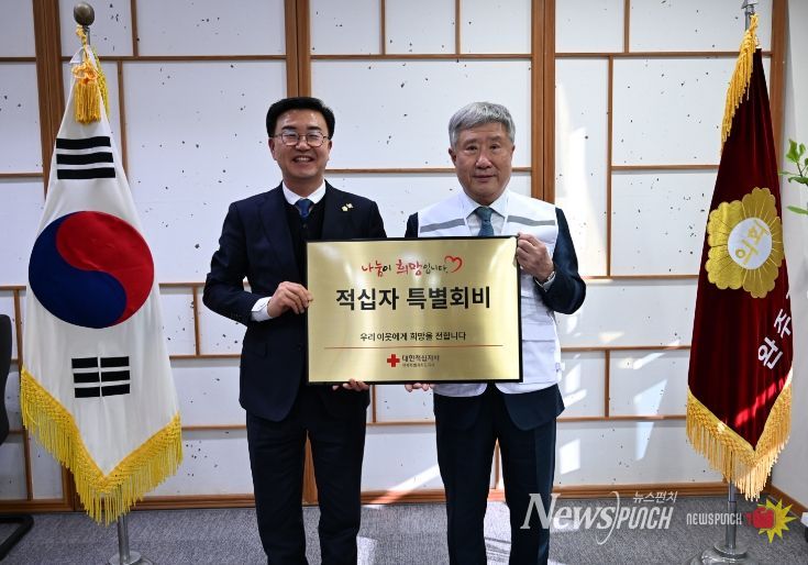 뉴스펀치 최영남 기자 | 완주군의회 유의식 의장은 6일 의장실에서 대한적십자사 전북지사에 ‘2026년 적십자사 특별회비’를 전달했다.