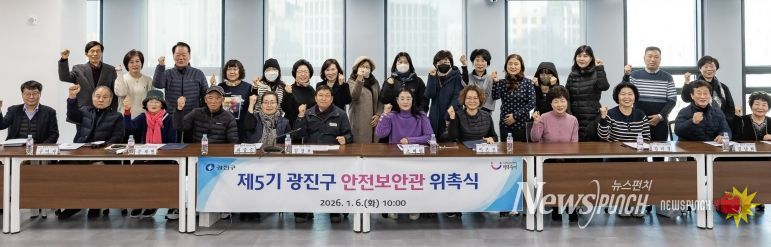 뉴스펀치 박상훈 기자 | 광진구가 1월 6일 제5기 광진구 안전보안관 위촉식을 열고, 지역 안전을 함께 책임질 주민들과 공식 활동을 시작했다.