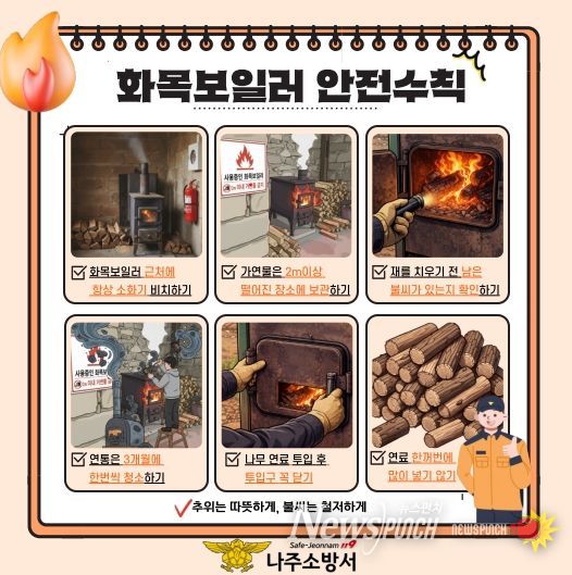 뉴스펀치 김윤걸 기자 | 나주소방서(서장 신향식)는 최근 기온 하강으로 화목보일러 사용이 증가함에 따라 취급 부주의로 인한 화재 발생을 예방하기 위해 시민들의 각별한 주의를 당부했다.
