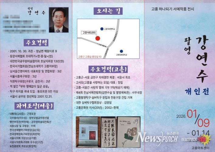 이번 전시는 고흥군 영남면에 거주하는 팔영 강연수 작가의 개인전으로, 총 40여 점의 서예 작품이 전시된다.