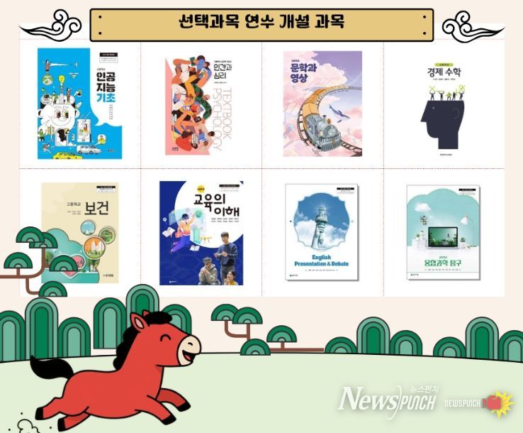 연수 과정으로는 ▲인공지능 기초 ▲경제 수학 ▲인간과 심리 ▲보건 ▲교육의 이해 5과목과 신설과목 ▲문학과 영상 ▲영어 발표와 토론 ▲융합과학 탐구 3과목 총 8과목이 개설됐다.