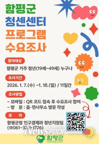 뉴스펀치 김용희 기자 | 전남 함평군이 청년들의 실질적인 수요를 반영한 청년센터 프로그램 운영을 위해 사전 수요조사에 나선다.