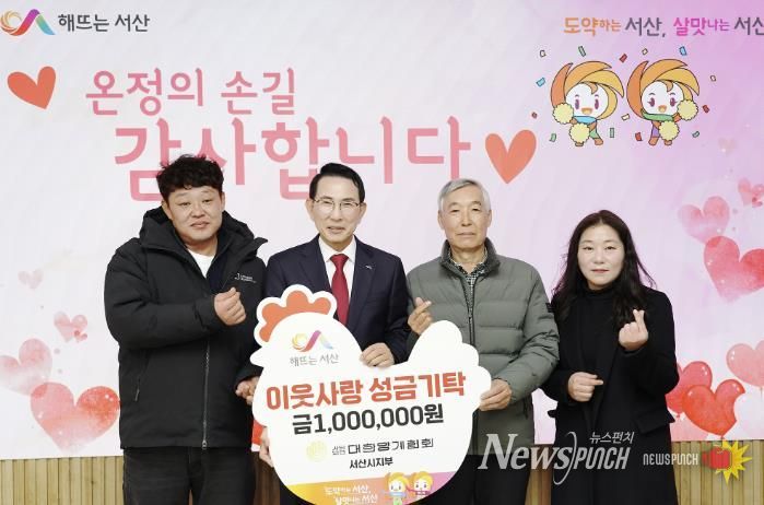 뉴스펀치 이현승 기자 | 충남 서산시는 지난 8일 대한양계협회 서산시지부가 관내 어려운 이웃을 돕기 위해 100만 원을 기탁했다고 밝혔다.