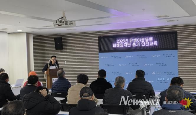 뉴스펀치 이현승 기자 | 충남 아산시는 아산경찰서와 협업해 2026년 유해야생동물 피해방지단 안전교육을 실시했다.