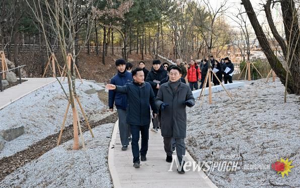 뉴스펀치 박상훈 기자 | 의정부시는 2026년 병오년 새해를 맞아 1월 8일 녹지 인프라 확충을 위한 주요 사업 대상지를 현장 점검했다. 점검 대상지는 ▲장암동 실외정원 ▲용현산업단지 완충녹지 산책로 및 가로숲길 조성 사업지 ▲민락동 감성쉼터 등이다. 이번 점검은 도심 속 쉼터와 실외정원 확충, 안전한 보행환경 조성, 산림 명소 발굴 등 녹지 인프라 조성 사업의 추진 현황을 점검하고, 시민들이 일상에서 녹지 공간을 보다 쉽게 이용할 수 있도록 추진 중인 ‘도시숲 프로젝트’의 사업 방향과 현장 여건을 확인하기 위해 진행됐다.