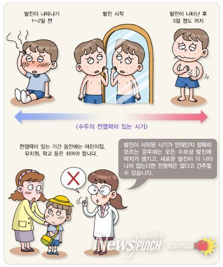 수포액에 직접 접촉하지 않더라도 비말이나 호흡기 분비물을 통해 공기 감염이 가능해 예방 관리가 무엇보다 중요하다.