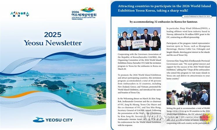 한편, 여수시는 국제 자매·우호도시를 중심으로 E-뉴스레터를 배포하며 여수세계섬박람회 온라인 홍보활동도 꾸준히 이어가고 있다.