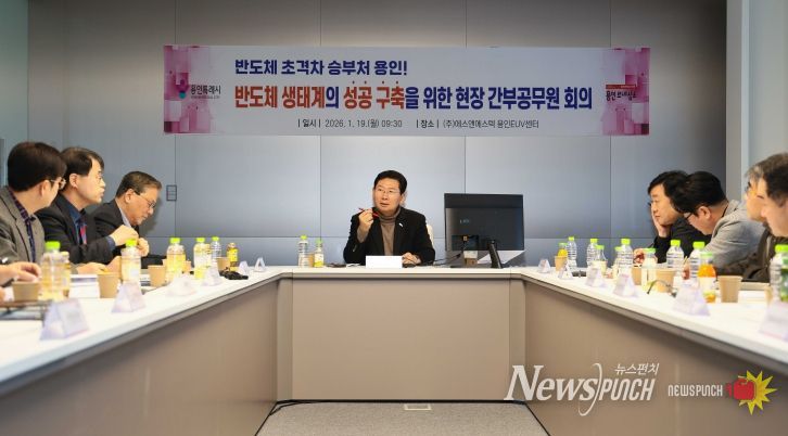 뉴스펀치 박상훈 기자 | 용인특례시는 19일 처인구 이동읍 용인테크노밸리 일반산업단지에 입주한 기업인 ‘(주)에스앤에스텍’에서 현장 간부공무원 회의를 개최했다.