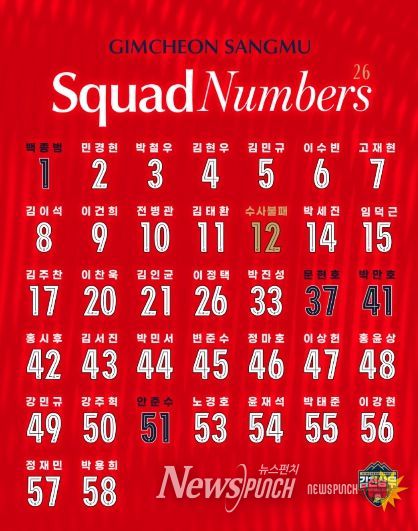 뉴스펀치 박세훈 기자 | 김천상무가 2026시즌 프로선수단 배번을 공개했다.